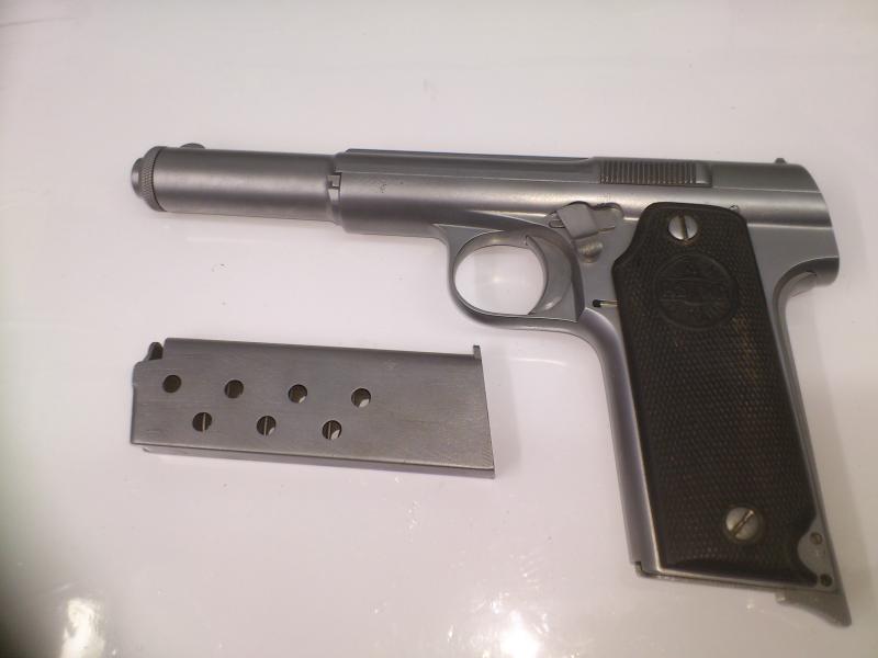. A mi me paso algo parecido, es más el numero de serie de la mia es muy proximo al de esta. Tras buscar y buscar información, di con alguien que estuvo en Astra trabajando y me comento que cuando se enviaban las armas al banco de pruebas, estas solian ir sin terminar y sin pavonar, así si no pasaban el bope, ahorraban gastos. Sobre la mia me hizo la observación de que le faltaba el pasador que retiene el extractor y que era normal. Dicho pasador en una astra 400 completamente terminada no se ve pues lo tapa el pavón.