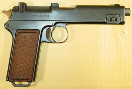 Pues si tiene toda la pinta de una Steyr, la culata es demasiado grande para ser una frommer stop que cargaba 7 disparos de 7,65mm o de .380