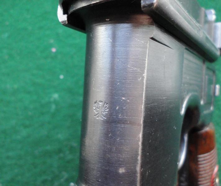 Ese 9 corresponde a un lote de 1916 de 150.000 piezas de un contrato con el ejército prusiano. Se llaman las C-96 / 16. De hecho, se encuentra el águila prusiana en la parte delantera de la zona de carga. Llevan del lado derecho una letra de aceptación del ejército, las que he visto llevan en concreto una "W" coronada. Creo que las hay con otras letras, pero no las he visto aun.