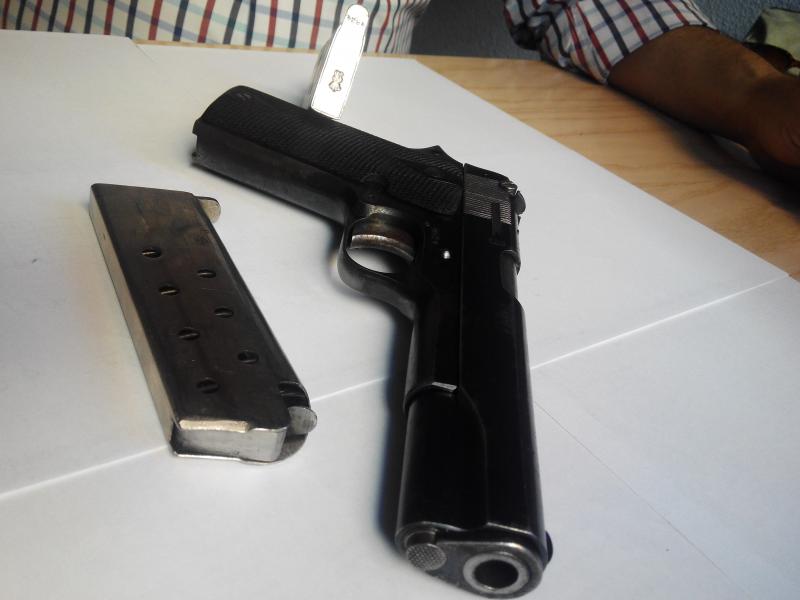 Muy buenas fotos, además, con la posibilidad de ampliarlas enormemente, y un arma que me encanta............. aunque no me habria gustado portarla de servicio, precisamente por el seguro de empuñadura que en mi modesta opinión (compartida tambien por el Cuerpo