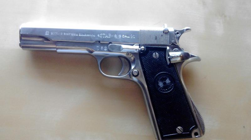 Este detalle me llevó a consultar con algunos de los mayores expertos en estas armas, incluyendo al autor del libro de referencia, pero al final creo que ha sido un español el que me ha puesto en el camino para aclarar ese número tan raro. Según esta persona, al acabar la Guerra Civil fueron relativamente frecuentes los casos de armas cuyos números de registro habian sido manipulados o incluso borrados, para ocultar el origen ilicito de las mismas (como anecdota, recuerdo el caso de un coleccionista americano que presentaba una de estas pistolas con una inscripción que la identificaba como perteneciente al sindicato C.N.T. en la corredera, algo muy extraño pues este sindicato habia llegado a fabricar una copia de la Astra 400 con sus marcajes en un primer momento y despues como F. Ascaso y nunca llegó a fabricar una Star, pero que al fijarse en ella con algo más de detenimiento se podia apreciar como en realidad era una de las arrebatadas a la Guardia Civil y cuyos marcajes originales habian sido alterados y casi borrados, aunque se podian ver cuando uno sabia donde mirar. Aqui el enlace https://www.catalogacionarmas.com/public/recuerdos58.pdf ) .