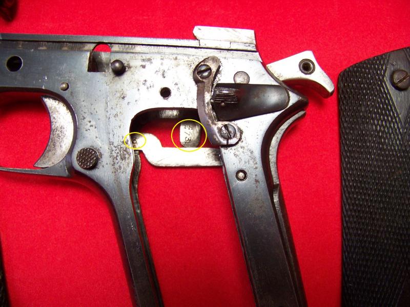 El número de serie del arma a la cual correspondia es el 27613, lo cual la situa solamente 58 números por debajo del último (27555) que aparece en el libro de Antaris como enviado a mediados del año 1931 (el 27 de agosto) a la Comandancia de San Sebastian ( un envio con un total de 8 pistolas), con lo cual podemos asegurar practicamente que ese emblema solamente se usó en aquellas recogidas en los anteriores post, y a partir de entonces lo hizo el "coronado" hasta el final de la guerra.