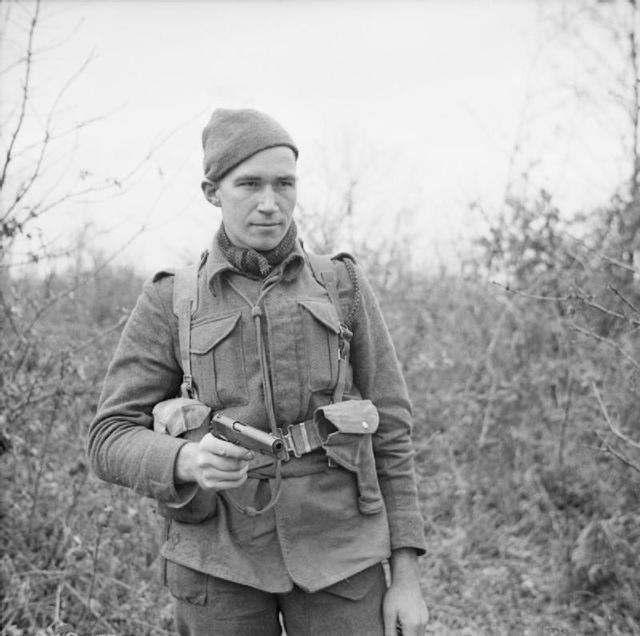 Siguiendo la lógica razonable y razonada, ¿qué pistola puede llevar en su mano este comando británico?