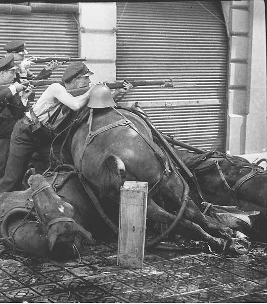 La foto fue tomada en las calles de Barcelona durante la Guerra Civil por el famoso fotógrafo de la época Agustí Centelles del que son muy conocidas imágenes como la anterior o también por ejemplo esta otra que os dejo.