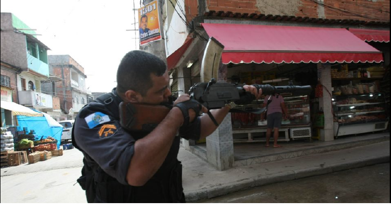 Muy bien también Beltran por el apunte ya que el individuo de esta foto actual es exactamente un policía brasileño con una vieja Madsen en sus manos.