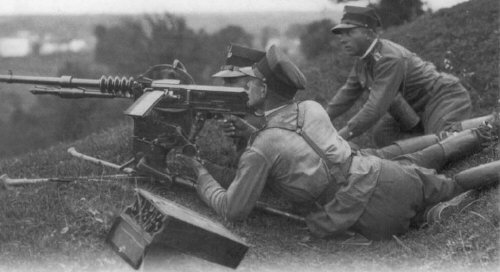 Los soldados son polacos por la gorra bastante característica. Y la acción bien pudiera desarrollarse en maniobras o durante la guerra ruso polaca de 1919-1921.
