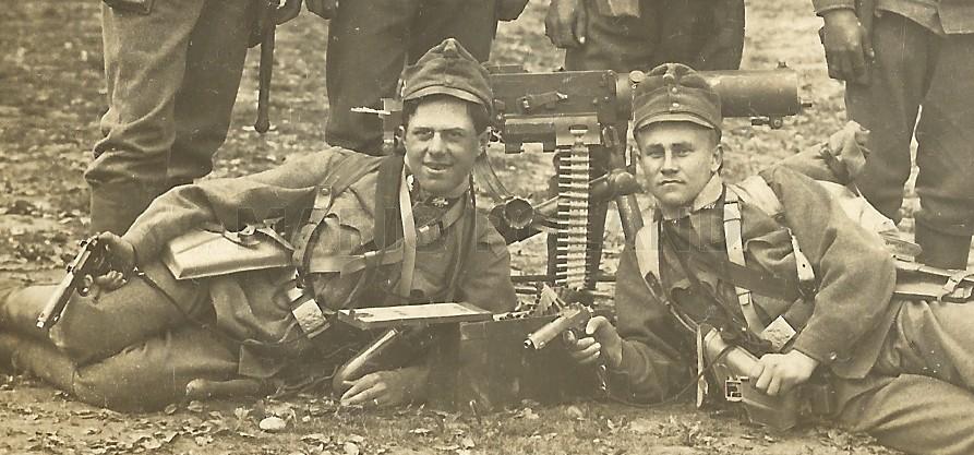 austriacas, manejadas por unos soldados austriacos de un equipo de ametralladora. Primera guerra mundial.