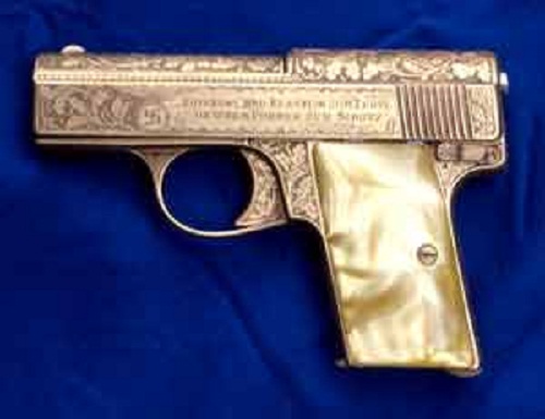 La dorada es en calibre 7,65 mm aunque el calibre inicial de este modelo fue el 4,25 y también se fabricó en 6,35.