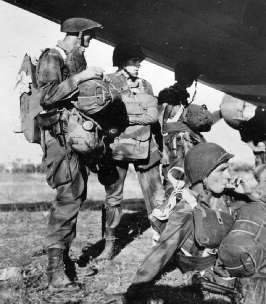 ¿Qué pistolas llevan el primero y el tercero de estos paracaidistas norteamericanos que están de pie a punto de subir a su avión de transporte en Agosto de 1944?