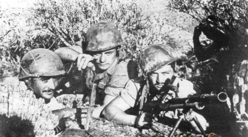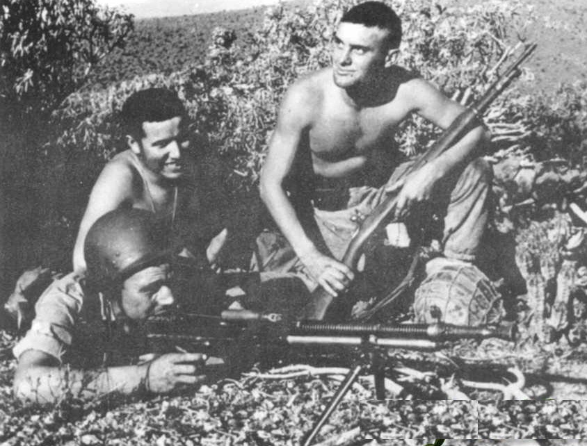 Aunque pueda no parecerlo son paracaidistas españoles en 1957 durante la guerra de Sidi Ifni y el arma es un fusil ametrallador FAO fabricado en Oviedo.