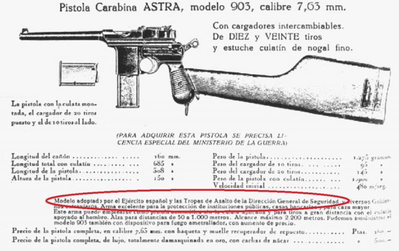 En la publicidad de la Astra 903 se puede leer remarcado su condición de reglamentaria.