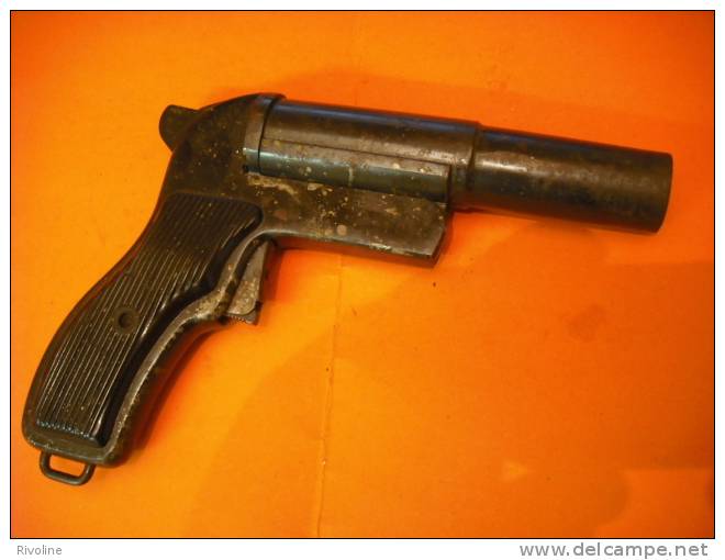 La pistola lanzabengalas es esta, no le veía ni la falta de guardamonte ni el martillo percutor...pero no se como se llama![]()
