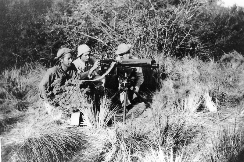 Exprimiendo esta imagen y ahora que sabemos el país donde estamos incluso podríamos averiguar fácilmente el nombre de ese conocidísimo tipo de fusil que vemos a la derecha de la imagen y que, como en España, también fue reglamentario en ese país.