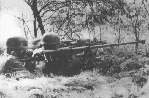 Para completarlo sólo un poco más hay que decir que por supuesto ambas armas son suizas, que esas plumas sólo pueden ser de Bersaglieri italianos y que el soldado "dormido" es un voluntario estonio que tiene entre sus manos un arma capaz de atravesar el blindaje de un tanque ruso T-26 a más de 400 metros de distancia.