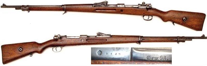 el tercero un fusil Mauser Gewehr 98 del 8mm mauser ...y el cuarto un fusil anti tanque Tank Gewehr del calibre 13x92SR Mauser con salida en boca de 913 metros por segundo