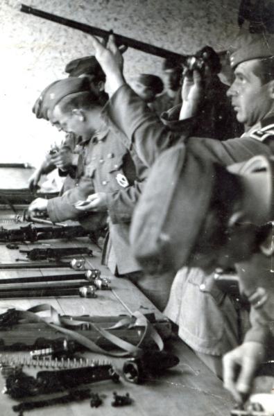 Lo que vemos aquí son armeros alemanes con despieces de ametralladoras MG-42.