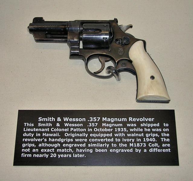 Patton utilizaba a diario tres armas, sus dos revólveres al cinto, que primero fueron dos Colt SAA del 45 y después cambió uno, el del lado izquierdo, por un Smith & Wesson 357, y además solía llevar una pistola oculta en el pantalón o en la guerrera, efectivamente una Colt 1903 hammerless del calibre 32 y también una Remington 51 del 380. Alguna vez también uso el Colt del 38 spl, pero raramente portaba la 1911.
