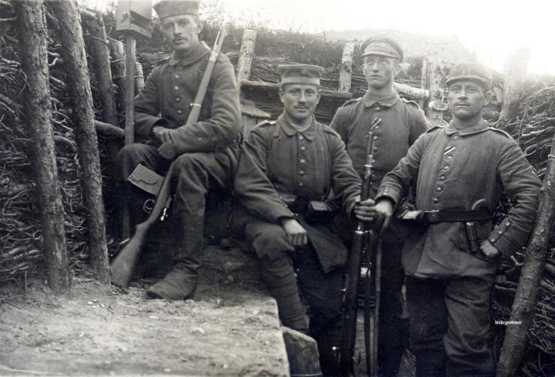 El soldado está bebiendo agua del tubo de refrigeración de una Maxin 1910.