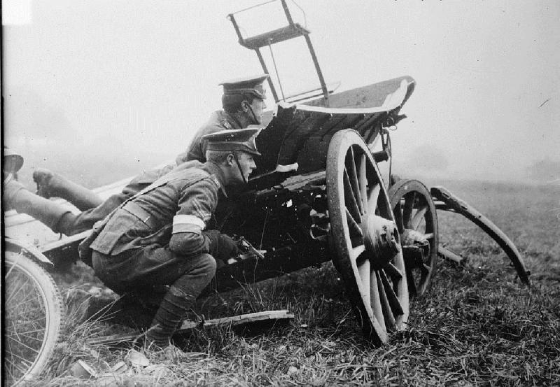 En un extremo, el combatiente que lleva casco, parece que sujeta un fusil tipo mauser. Por la variedad del armamento y la indumentaria, se diria que son maquis o partisanos.