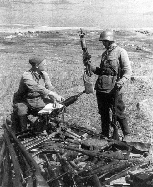 Son esas armas japonesas que mencionas y están en manos de soldados soviéticos pero hay un detalle en la foto que quizás nos oriente hacia otra situación y otra época diferente.