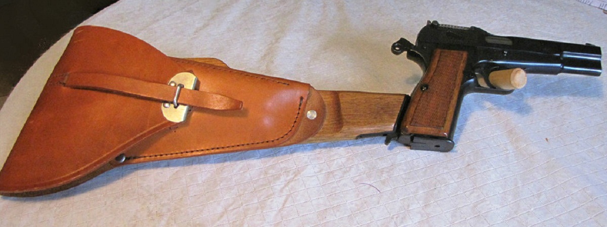 En teoría este modelo de Browning 35 fue fabricado en Bélgica antes de la ocupación Nazi en Mayo de 1940 y era una pistola como bien dices con alza tangencial pero que además llevaba también una ranura posterior para adaptarle un culatín. Este detalle no podemos apreciarlo en la imagen.