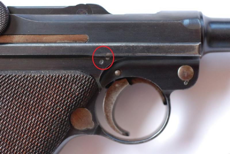 Al igual que otras piezas de Luger, el retén de corredera debe llevar las 2 últimas cifras del Nº de serie del arma. Algunos aún conservan el azulado obtenido durante el templado de la pieza y del muelle. Puede ser una señal del No-Repavonado del arma, pero no a 100 %.