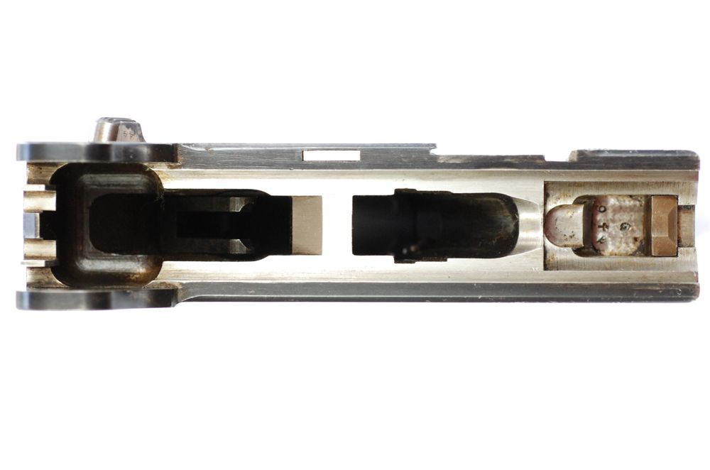 En cuanto a la respuesta de la Luger, decir que se produjo una transición en las P 08 producidas en 1913, cuando por una directiva con fecha del 6 de mayo de 1913, se procedió a incluir esta parte que permitía retener la corredera, indicar que el cargador estaba vacío y facilitar la recarga.