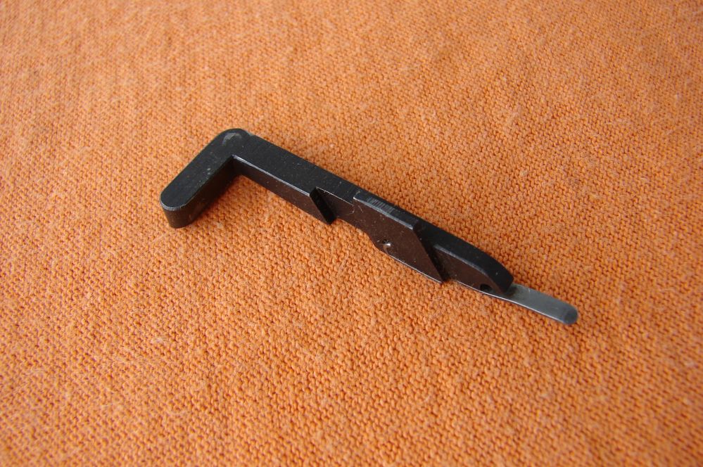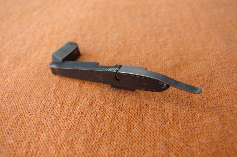 El dispositivo consiste en un pequeño muelle de lámina, unido a una pieza en cuña que bloquea la corredera con el último disparo.