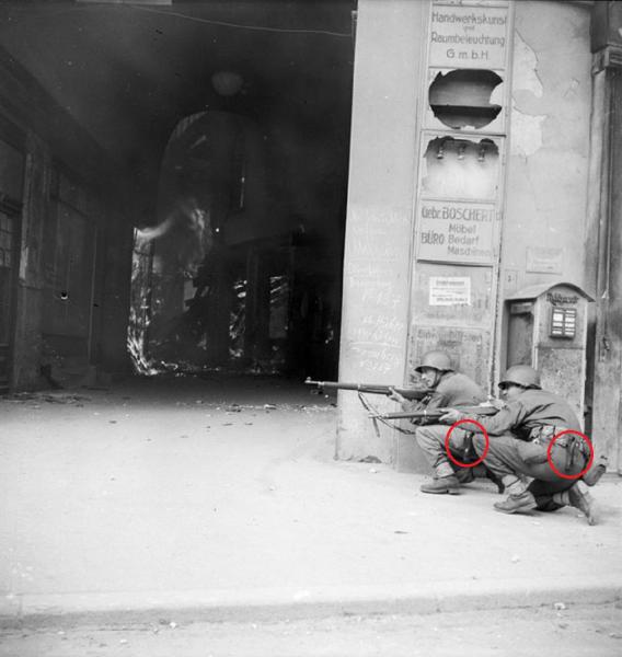 Los soldados de la foto, son franceses y tropas no combatientes, van equipados por USA, de ahí los fusiles, el uniforme y...EL POUCH CS 34!!