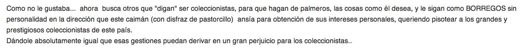 No manipules la información, eso es la respuesta a un correo que envío el Sr Marcel al ICAE, a titulo particular, lo dice la respuesta del propio icae, "en respuesta al correo electrónico enviado por el señor Marcel.....) no fue enviado por Anarma y no tiene nada que ver con comisión de coleccionistas creada ahora por Anarma ( y que son 2 y el de la flauta) que se van a reunir como usted a dicho en 2 semanas......