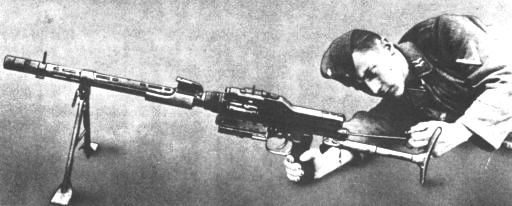 Es una MG-17 para uso terrestre dotada de un bípode y de una rudimentaria culata.