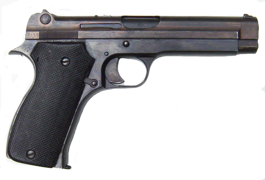 La pistola que esgrime el caballero uniformado, puede ser una Browning FN cal. 6'35.
