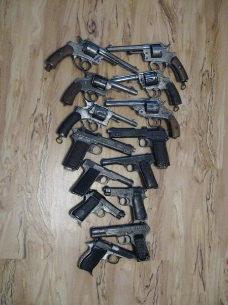 Debajo a la derecha hay lo que parece una copia eibarresa de un S&W DA en calibre 11 mm (.44 Russian) que también fueron adquiridos por el Gobierno Rumano durante la 1ªGM.