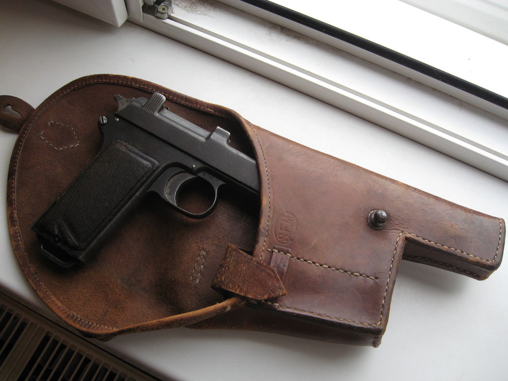 Creía que podía ser una modificación sobre la base de una funda austro-húngara para la Roth Steyr pero si dices que es de otro país podría ser entonces una funda yugoslava o quizás checoslovaca para esta misma pistola.
