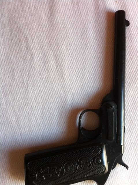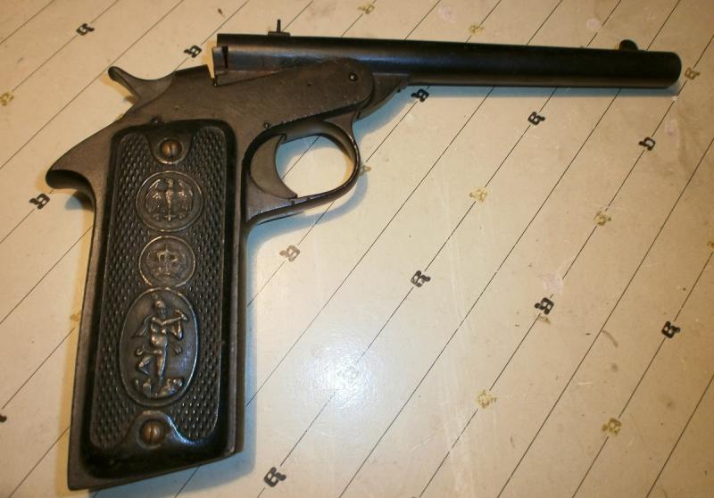 Lo que he podido averiguar es que pudiera tratarse de una version algo más "refinada" de una pistola TOK argentina tambien llamada "matagatos" que disparaba un calibre 6 mm flobert con cañón sin extriar!