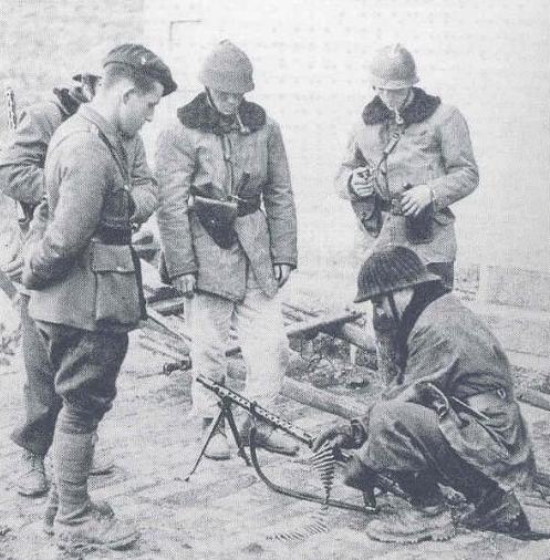 Lo que llama la atención es ver tropas francesas con subfusiles alemanes Erma EMP-35.