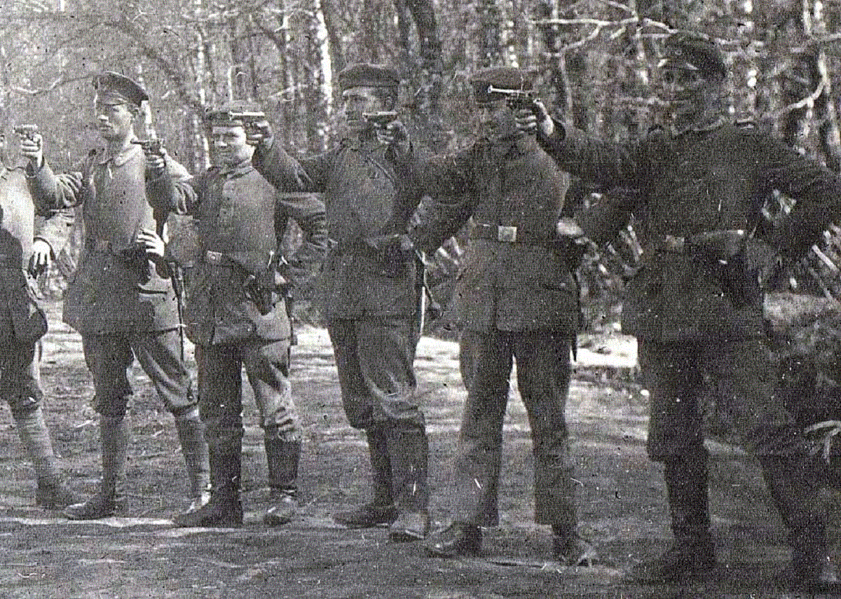 Y también correctas estas pacopi, Mauser 1914 y Parabellum P.08 en manos de soldados alemanes durante la 1ªGM.