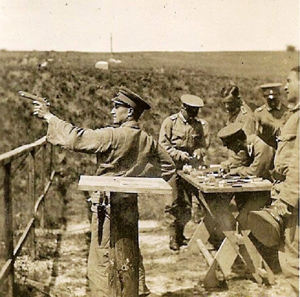 Una de las primeras Colt 1911. No soy capaz de distinguir por el uniforme si está en manos americanas o inglesas.