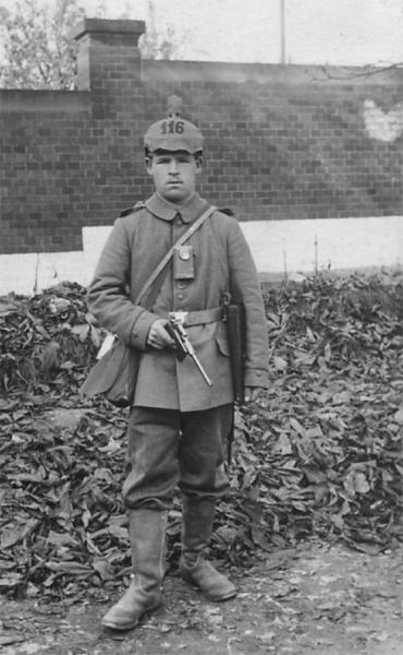 Seguimos con las alemanas......................... Una Mauser C-96 en manos de un integrante del 116 Regimiento, casi con seguridad muy al principio de la guerra, teniendo en cuenta el uso del "Pickelhaube" de cuero en lugar del casco de acero que se impuso en 1916.