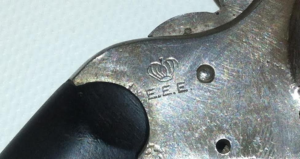 Yo he visto 4 o 5 veces revólveres de este tipo con ese punzón "E.E.E." bajo la corona.