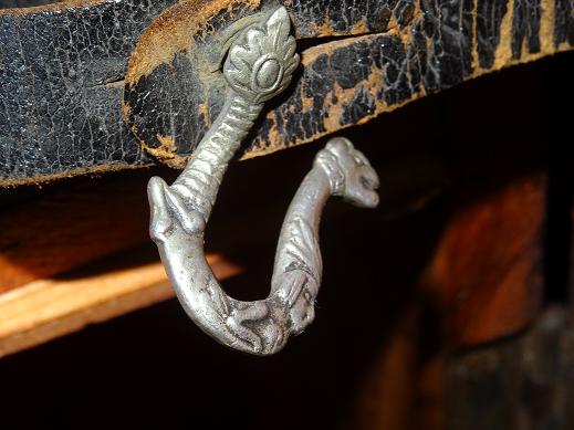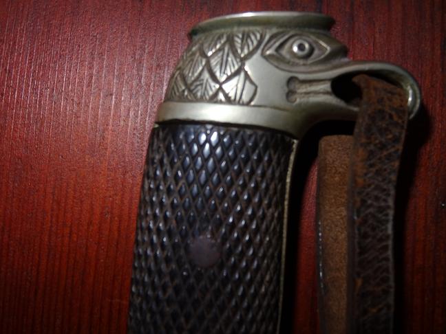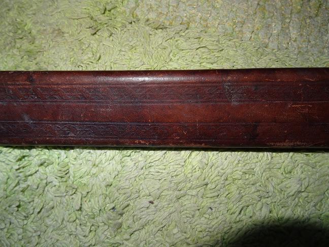 Además posee el tahali y otra pieza de cuero la cual desconozco y detallo en una foto con una pieza de metal que parece representar un dragon con un cuerpo dentro.