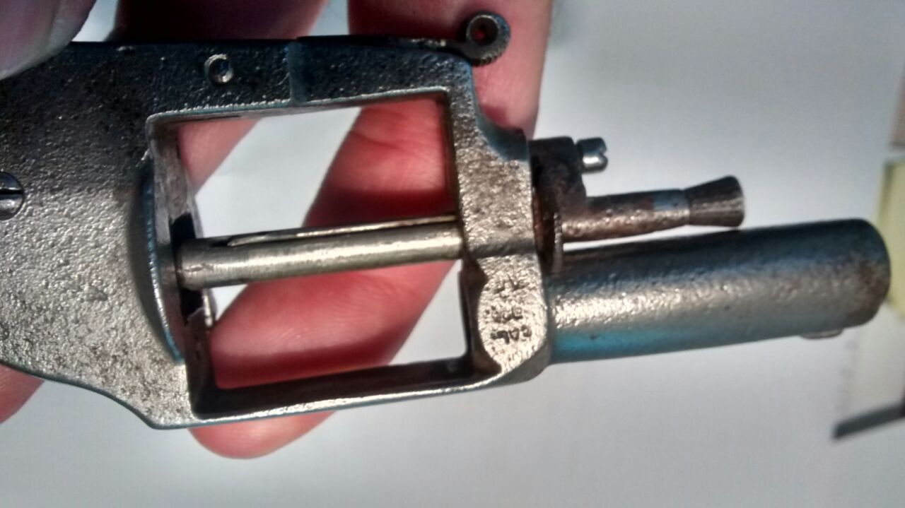 Hola un amigo que vive en Francia me manda unas fotos para ver si alguien conoce este revolver y que calibre podría ser, en el cañón parece que pone PUPPy parece un velodog, y junto al cañón parece que pone cal....., no se le