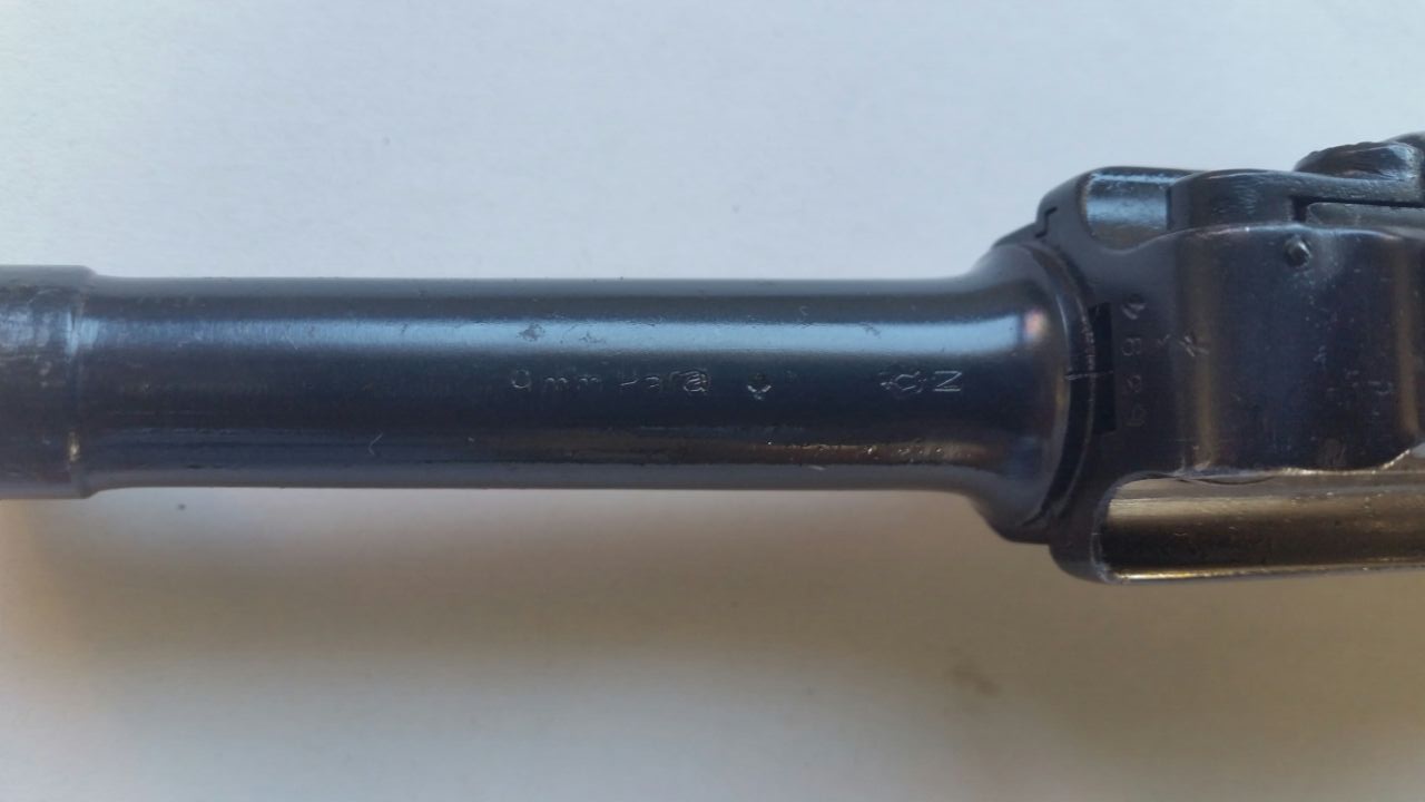 Sé de qué Luger estás hablando, porque yo también pedí fotos de ella. Por lo pronto está totalmente repavonada y dispone de punzones de prueba modernos que rebajan muy mucho su valor de colección, así como lo hace también el hecho de que el cañón no sea el original del arma. La veo más un arma para tiro deportivo que de colección, pero claro, yo me considero de los puristas que para este destino buscan piezas en estado totalmente original y piezas de idéntica numeración, cosa que no es el caso.