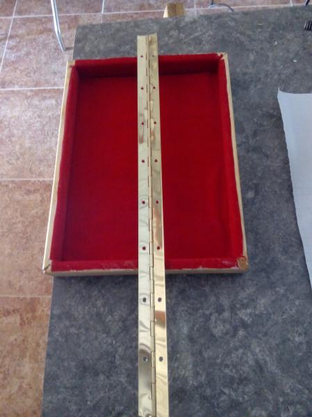 Queda asi, de la tira de bisagra de piano que se ve en la foto, se cortan dos trozos de unos 4 cm, para después unir el marco y la caja