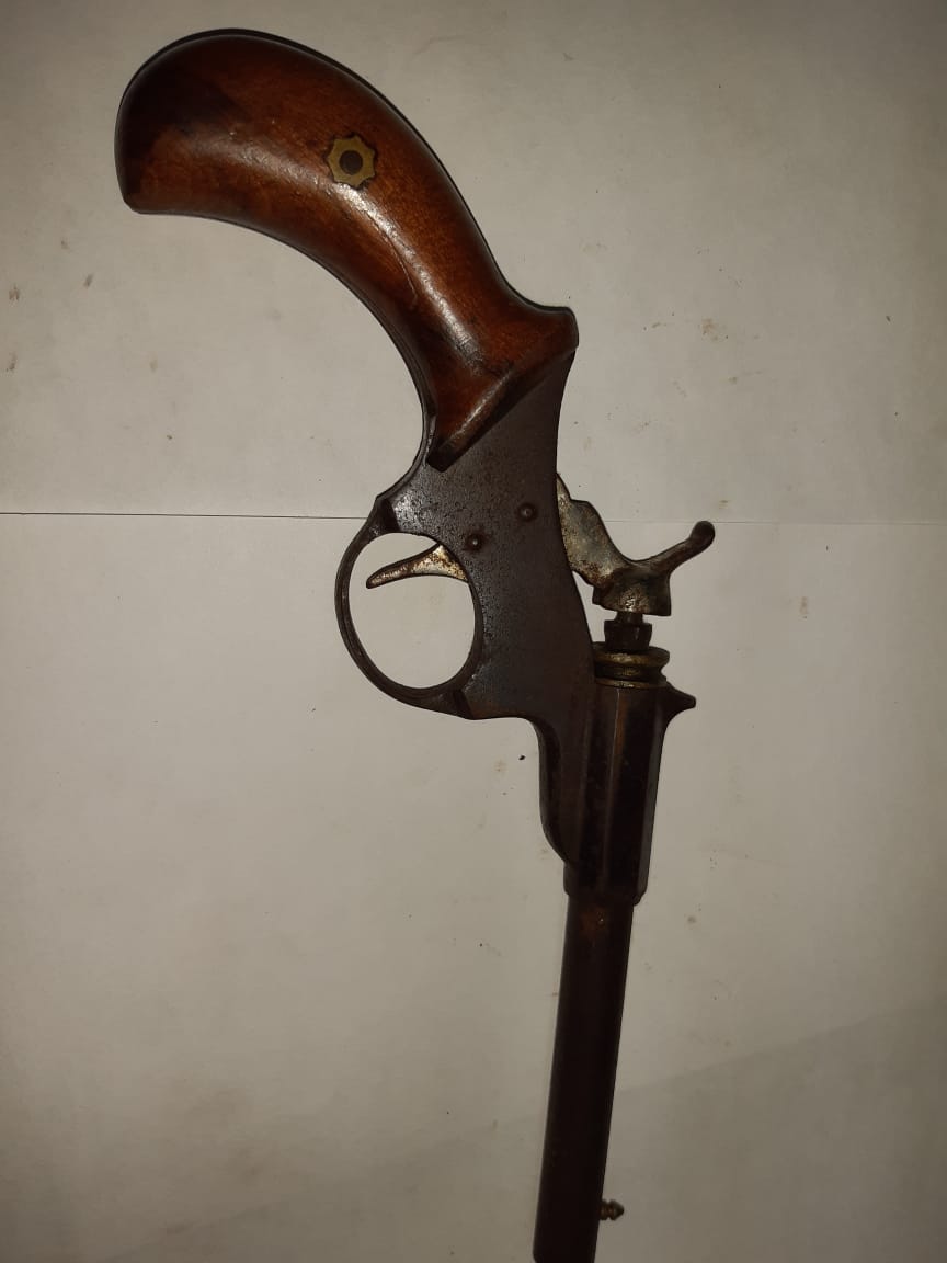 Lo que te ha dicho el compañero. Tiene toda la pinta de un arma de tiro de salón, normalmente las que he visto en calibre 6mm flobert. Supongo que se puso de moda a finales del XIX, principios del XX lo de tirar en el salón con el café después de comer, creo que las amas de casa se encargaron de acabar con esta modalidad