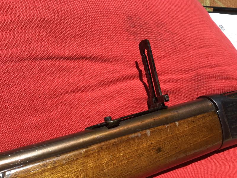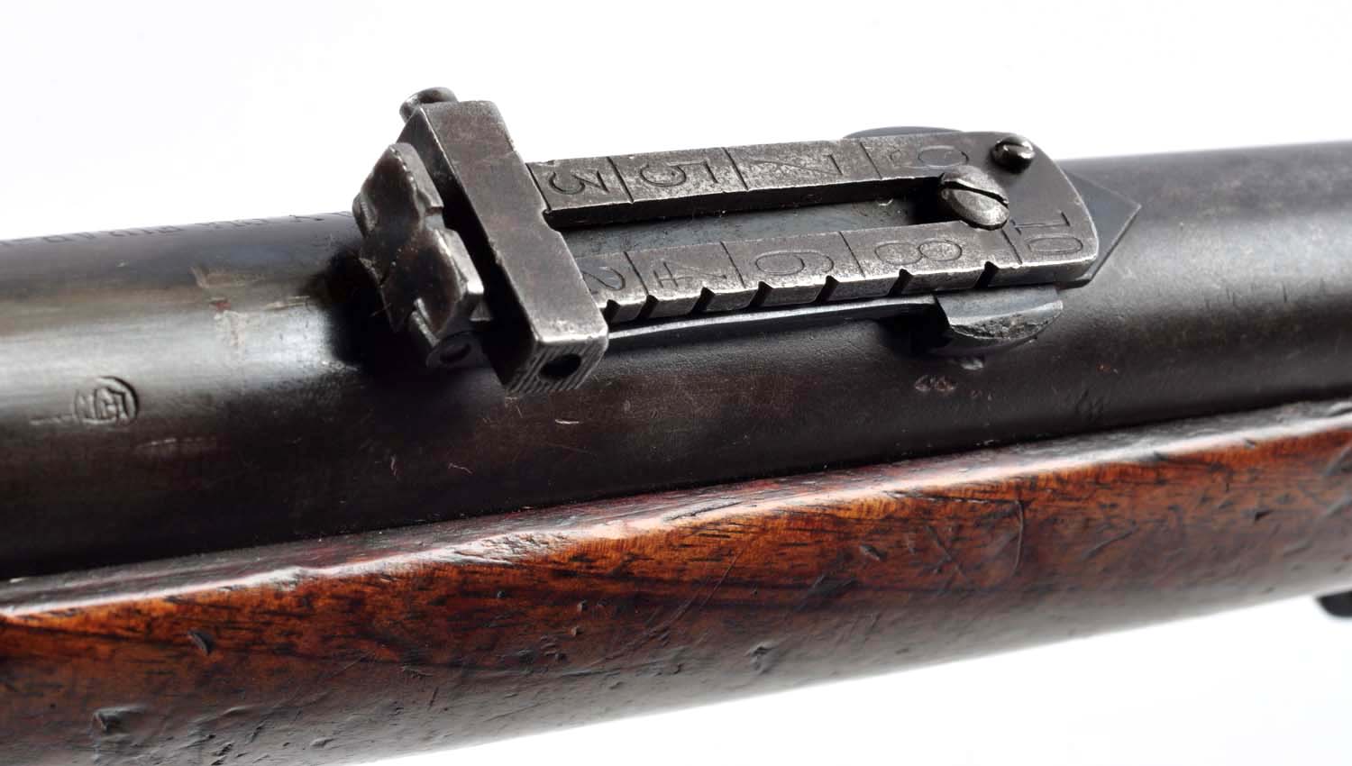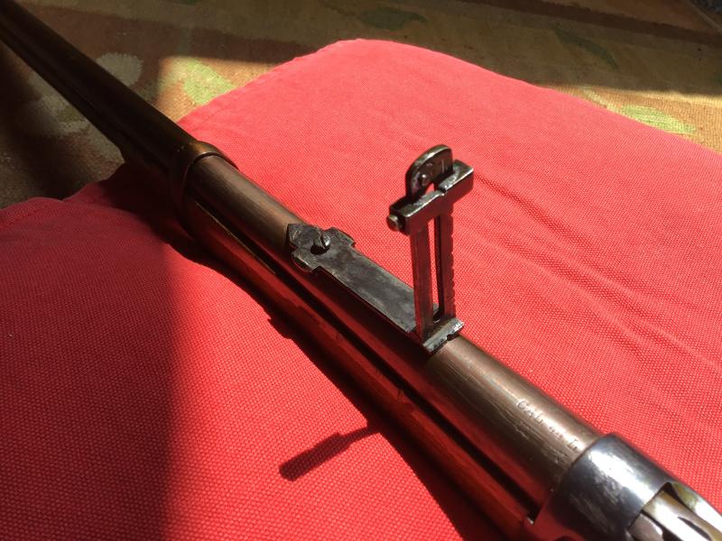 Es un alza tangencial regulable en altura común en fusiles y carabinas de la época (Mausers, Mosin 81/30, Winchesters, destroyers, y muchas/os más). Para tirar a 50 metros ha de estar el guión en la posición más retrasa (tal y como aparece en la foto que has colgado). Un saludo.