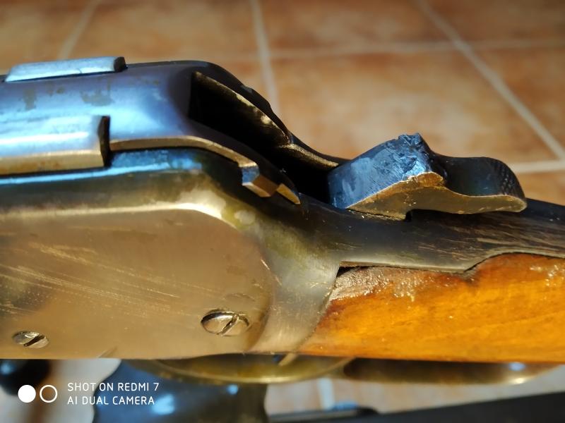 Incluso puedo entender que sea un refrito de fábrica o con reparaciones de fortuna, ya que tiene casi borradas los grabados aunque conserva perfectamente legible el número en la cantonera