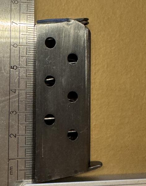Añado fotos para comparar. Es un poco más largo que un cargador del 7,65 de una Bayard 1908 y más corto a su vez que el cargador de una FN 1910.
