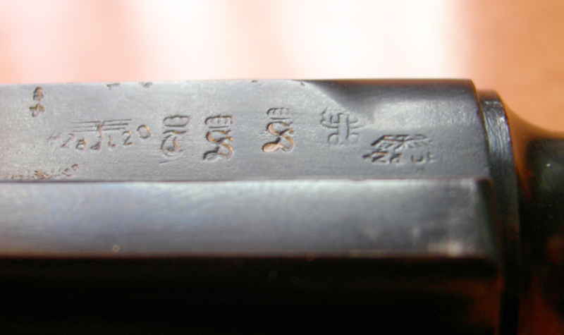 Y seguimos con el enigma. Resulta que si miramos el cañón, aparte del Nº de serie (502 b), y el 8,82 del control del calibre, vemos 3 marcajes.