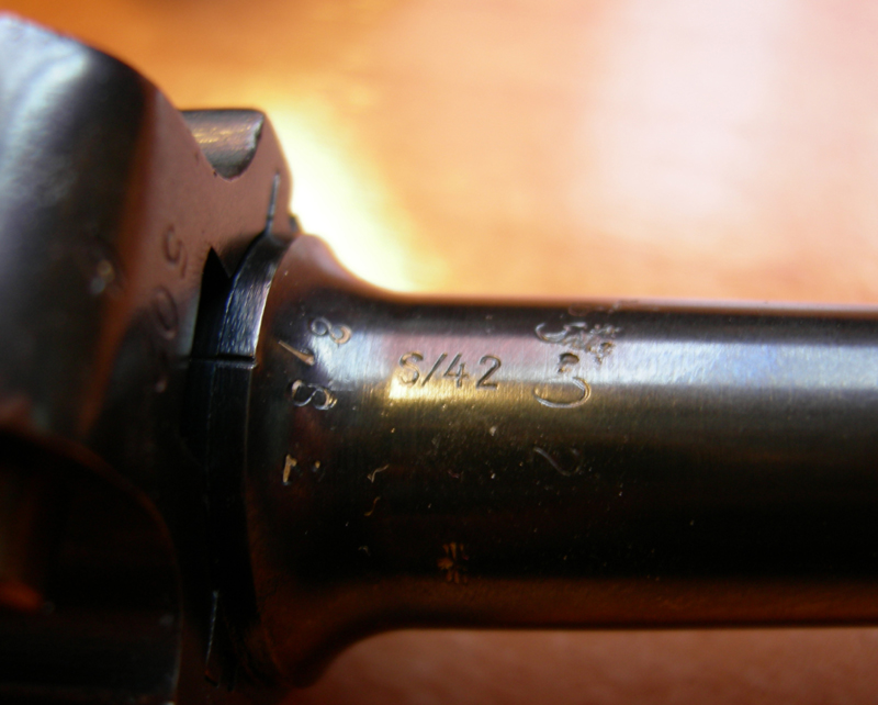 Sería de lógica pensar que la reposición se efectuó en ese depósito de material militar de Ingolstadt, bajo la supervisión de obreros y técnicos de Mauser, en algún momento entre 1934 y 1940, época del código S 42. Y también se le cambió el toggle train, buscando uno en que coincidieran los Nºs